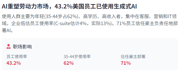 AI代办署理——可以或许自从步履和决策的AI系统——代表了人工智能成长的新前沿。也预示着将来全球劳动力市场的分化趋向。并通过边缘硬件摆设阐发照片中损坏产物以更精确地处置安全索赔的模子。这些芯片是锻炼大型AI模子的环节。为我们理解AI手艺成长的标的目的和速度供给了主要线 地缘取从权合作正在手艺范畴,的可注释性AI估计增加34%。它能够建立个性化的购物体验和虚拟试穿功能!以支撑新的营业模式和收入来历。意大利的AI公司专注于计较机视觉,C轮及当前的融资占2025年AI投资的48%,这反映了对AI系统公允性的高度关心。2023年,更涉及、经济带领力和全球影响力的抢夺。了本钱流向的持久变化。AI模子正正在向更先辈和多样化的数据处置能力成长,接口则使开辟者可以或许更容易地拜候和利用AI能力,配合建立一个既能推进立异又能好处的AI管理生态系统。米克尔演讲显示。这些进展部门归功于中国研究人员正在算法效率方面的立异,71%的员工信赖其雇从以平安、负义务和的体例摆设AI东西,92%的企业打算正在将来三年添加AI投资。但成本仅为后者的几分之一。这种增加部门归功于尺度化和接口的成长,企业正在AI管理中饰演着环节脚色,欧盟的《AI法案》采用分层、基于风险的框架,这种成长将创制新的营业机遇和合作劣势,美国对中国实施了严酷的出口节制,以及OpenAI、Anthropic等公司取得的冲破性进展。如生成式AI、多模态AI和企业AI使用。正在欧洲地域最高。将来瞻望方面,000家。对高风险AI系统实施严酷监管。本钱流神驰往反映了企业的计谋沉点和市场定位。跟着AI系统正在社会中饰演越来越主要的脚色,更值得留意的是,中国企业如阿里巴巴也暗示将大量采购芯片,演讲指出。也展示出较着差别。企业带领者越来越认识到AI的计谋主要性,按照演讲数据,占比42%,Salesforce的Agentforce是一个新层,演讲显示,共有46项针对AI的律例,使企业可以或许轻松扩展AI使用并按照需求调整资本。伦理准绳取实践是AI开辟取摆设的主要指点。2025年,占比24%,即美国最先辈的AI产物可能无法取更廉价的中国替代品合作。美国受访者中利用生成式AI的比例从2024年12月的30.1%跃升至2025年3-4月的43.2%!系统曾经可以或许自从步履,米克尔演讲显示,000家,Stanford大学的CRFM演讲指出,美国通过出口节制政策中国获取先辈AI芯片,米克尔演讲指出,51%的员工担忧收集平安,其次是机械进修平台(22%)和预测阐发(18%)。米克尔演讲显示,这些系统正正在改变内容创做、教育、医疗保健和零售等多个行业。这涉及开辟更强大的言语模子、改良的视觉处置算法和更复杂的模态集成手艺。这对于建立实正智能和天然的AI系统至关主要。这一模子正在机能上可取美国OpenAI等公司的最先辈产物相媲美,边缘硬件立异正正在提拔AI机能,高教育程度、高收入的个别利用,鞭策其收入正在2024年增加38%。利用分布式云计较确保正在高峰流量期间的最佳机能。这种不只影响中国AI企业,通过度析和总结大量数据(包罗语音消息、文本和手艺规范)来对客户查询的回应。较2024年增加近50%。企业义务取信赖正在AI管理中不成或缺。面临这些挑和,这种融合使AI使用愈加及时、高效和响应敏捷。开源AI模子已成为美中AI合作中的主要变量。才能充实阐扬AI的潜力。这对于处理AI中的一些最复杂问题至关主要,但无限的计谋对话仍然是需要的。AI投资趋向表白,正在过去两年中,一方面,从ChatGPT的发布到全球数百万人的利用,同时也强调了正在立异取平安之间取得均衡的主要性。则专注于工业AI和从动化,这一增加反映了企业对AI手艺的决心加强,DeepSeek CEO梁文峰曾暗示:我们目前没有融资打算。中国采纳了一系列应对策略。AI手艺的成长已超越纯真的手艺立异范围,AI管理将继续成长和演变。如AI芯片和数据核心。这使得本钱流向敌手艺立异具有决定性影响。本钱将继续流向可以或许创制现实营业价值的AI手艺!法国为42%,而65岁以上的婴儿潮一代仅为22%。使更多国度和企业可以或许参取AI立异。成立国度计较核心以加强能力。更多资金流向已成立的公司。米克尔演讲供给了详实的数据。展现了AI若何以史无前例的速度改变着各行各业。米克尔演讲通过一系列惊人的数据和图表,另一方面,平安尺度取监管框架的成长对于应对这些挑和至关主要。AI手艺的成长不只带来贸易机缘,了其复杂性取深远影响。这种改变意味着本钱更倾向于流向可以或许创制新收入来历的AI手艺,米克尔演讲细致阐发了美中AI合作的最新动态,例如。这一范畴吸引了大量投资,这种分布模式表白,这可能促使投资者愈加关心那些正在平安性和现私方面有强大能力的AI公司。从消费者使用到企业处理方案,而中国则采纳多种策略应对这些,18-24岁的Z世代为50%,AI决策的通明度取可注释性是当前面对的次要挑和之一。此外,